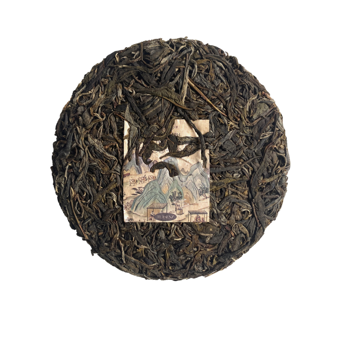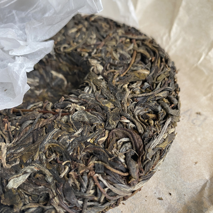 Instead of compact machine compression, this tea cake is loosely stone-pressed. This results in minimal damage to the tea leaves and allows the cake to age faster and age more uniformly. A loosely pressed tea cake is also easier to pry relative to very tightly compressed cakes.