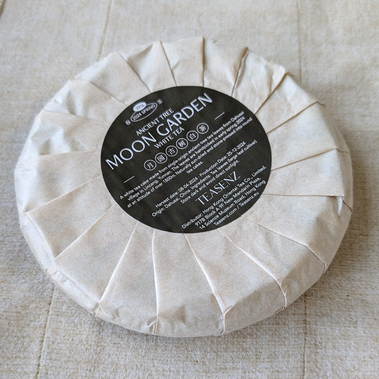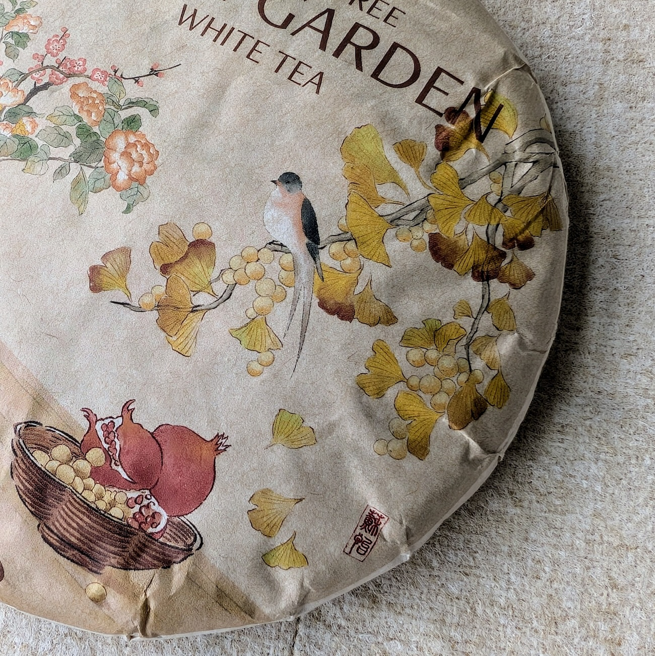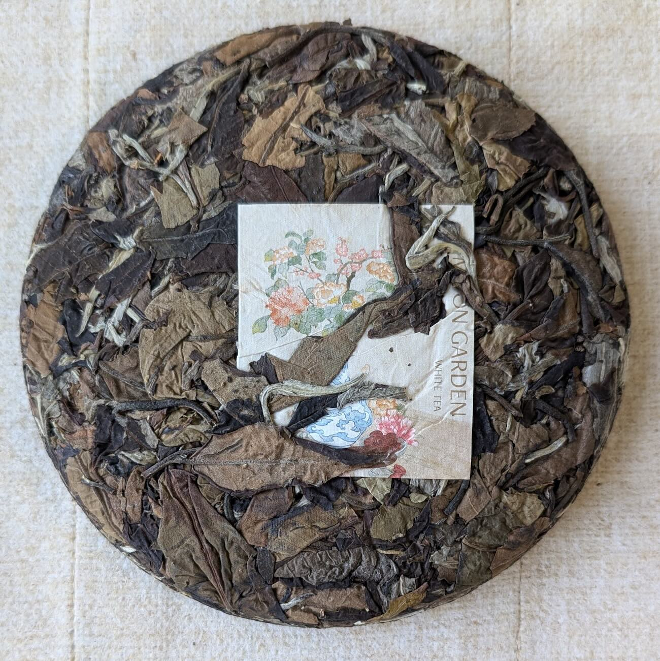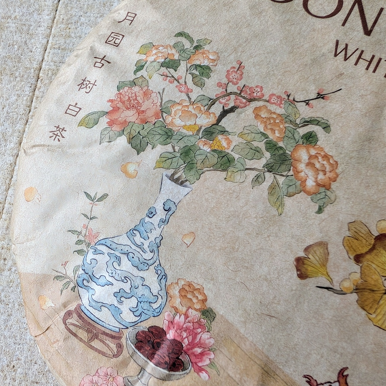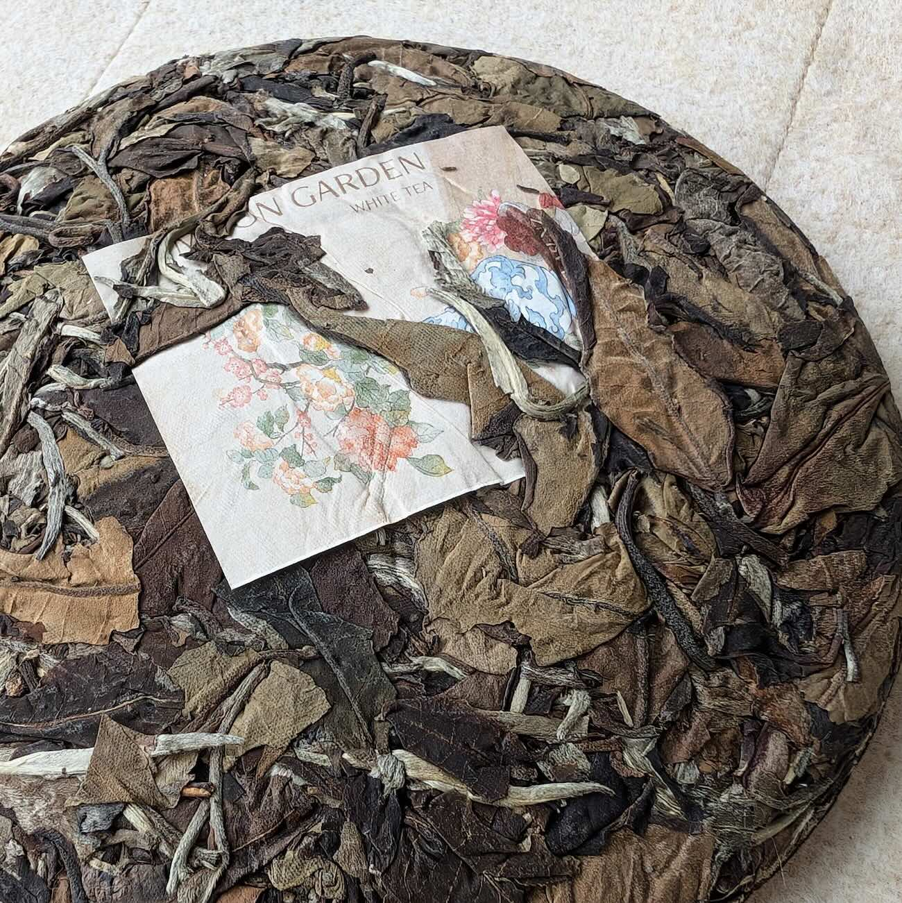 Visually, this tea cake is a feast for the eyes. Once the ‘Moonlight White’ cultivar tea leaves are carefully wilted and dried, one side of the leaf showcases a rich dark hue, while the other displays a warm brown tone. These colors beautifully contrasts with the silver-colored, downy tea buds.