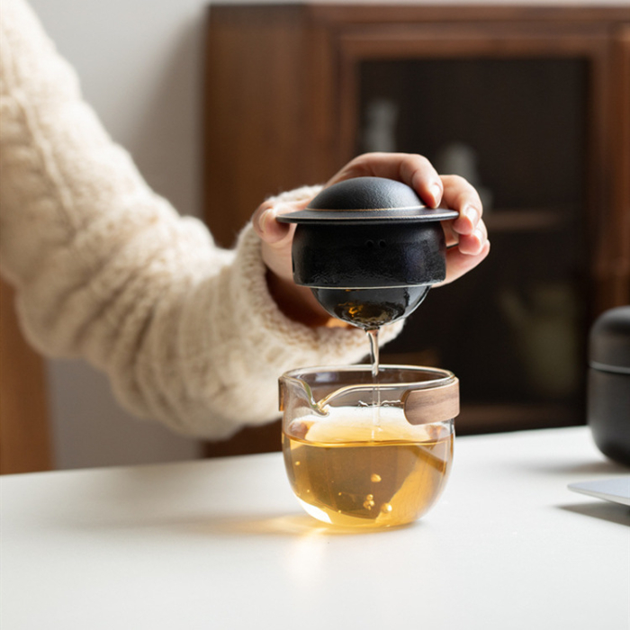 This easy tea maker is the ideal tea set to bring along your travels. The set is small, portable, and comes with a protective case.