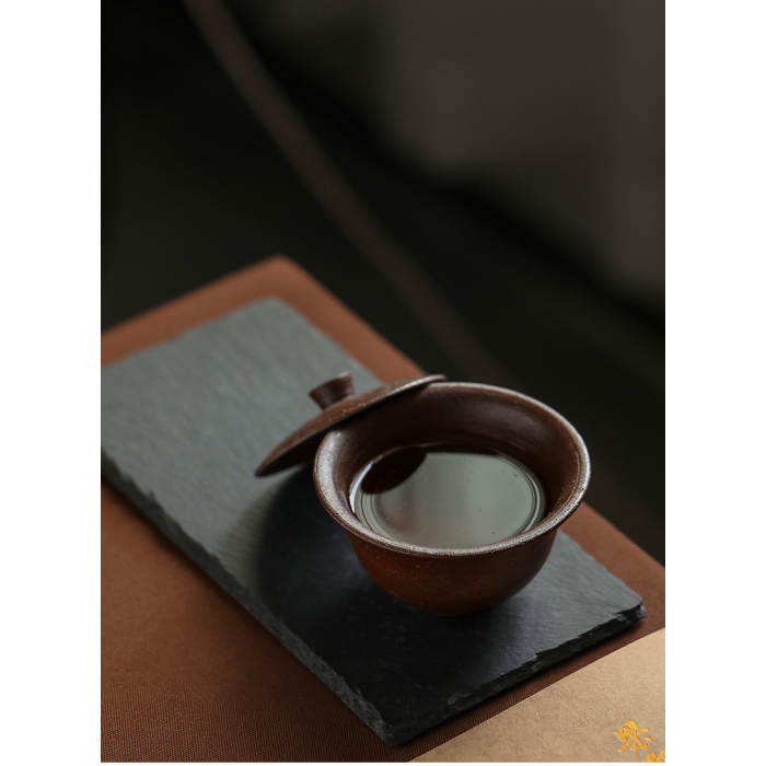 A ceramic gaiwan, handmade from rock clay known as lao yan ni (老岩泥). It undergoes traditional wood-oven firing at a high temperature range of 1300-1350ºC. This exquisite gaiwan is a part of our exclusive ‘Sapiens’ teaware collection, crafted by the reputable Qing studio located in Jingdezhen, the renowned hub of premium ceramic art in China.