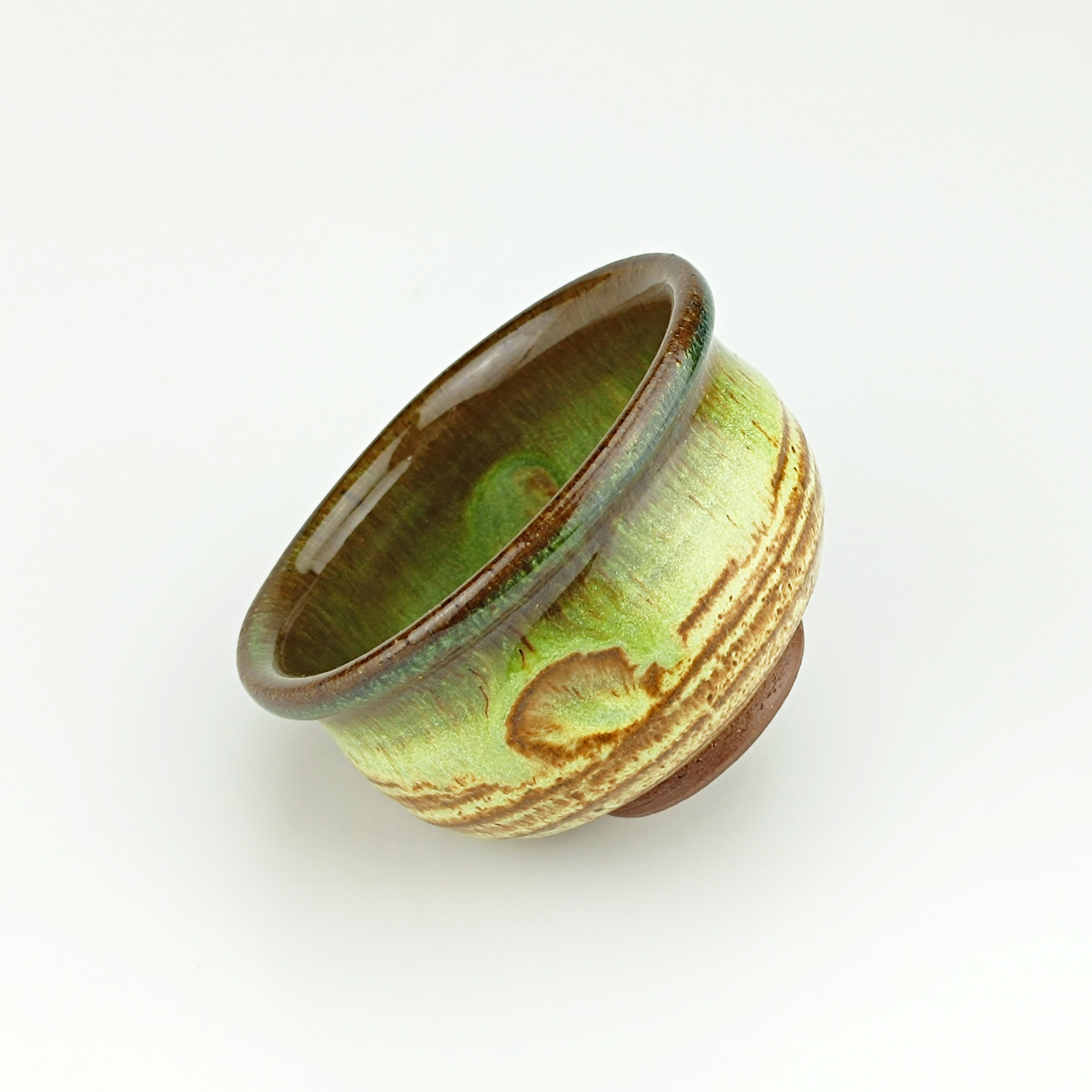 - The application of green and brown glaze not only enhances the aesthetic appeal of the teacup but also imbues it with a character that bridges the mysterious and the rustic, a testament to the artisan’s mastery over glazing techniques.