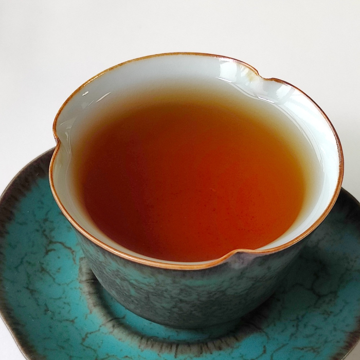 Unlike most classic Wuyishan black teas, which are sweet and straight forward, this Golden Peony black tea is more adventurous and complex in flavour. When prepared the traditional way, the first 2 steeps are pleasantly savoury and berry sweet, but the best is yet to come: Starting from the third steep, this tea is magical, as the tea reveals its fruity floral aroma with a base of minerals and pine wood. The taste isn’t aggressive neither bitter, the texture is characterised by a pleasant thickness, and the hui gan (aftertaste) is excellent. When it comes to endurance, this tea lasts many more steeps compared to small leaf black teas.