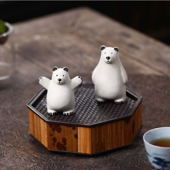 A cute set of two polar bear Tea Pets crafted from white jade Duan Ni clay. One has an happy personality while the other is shy, making them a perfect complementary pair.