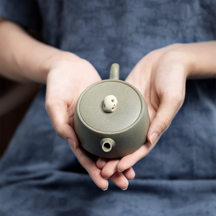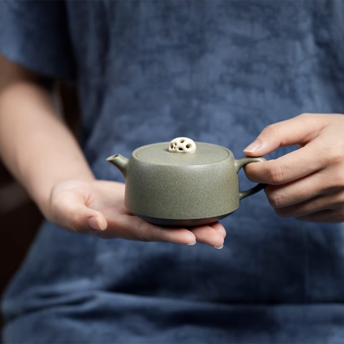 青段泥因其浅色、颗粒质感和极好的透气性而备受喜爱。烧制后,泥料呈现出自然的绿灰色,带来宁静的感觉。